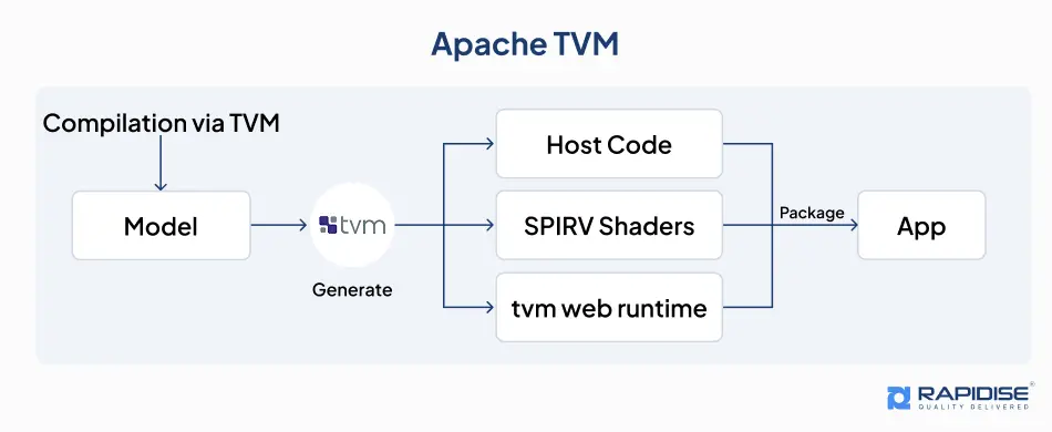 Developers can easily deploy AI models to multiple edge devices through TVM by taking advantage of its code generation capabilities which provide optimal efficiency. The combination of performance features and flexibility in TVM makes it an outstanding tool for deep learning model optimization during edge computing operations.