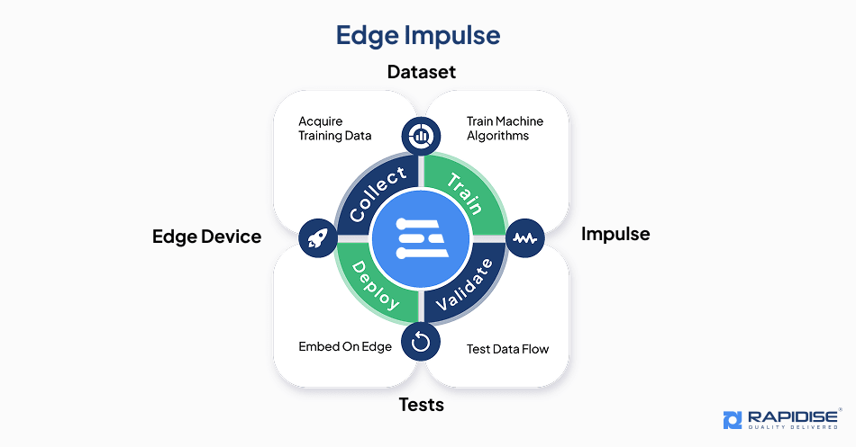 This blog presents an analysis of fundamental Edge AI Tools which cover model optimization frameworks as well as deployment and management solutions and hardware acceleration libraries with developmental platforms and security best practices and implementation approaches. The article shows how Rapidise supports businesses to develop Edge AI solutions.