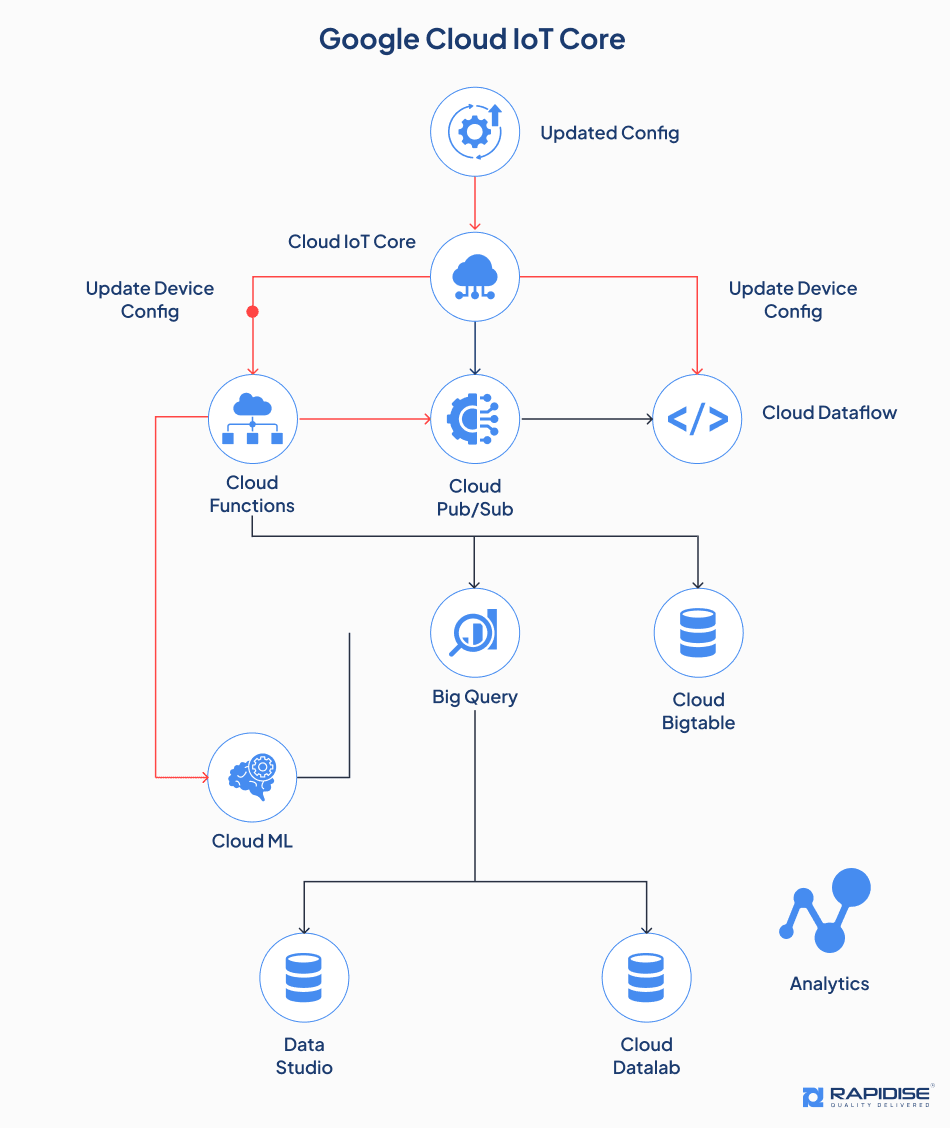 Google Cloud IoT Core allows integration with TensorFlow along with Edge TPU to optimize the inference process. The remote update features together with built-in authentication and device telemetry capabilities of Google Cloud IoT Core make it easy to handle AI model management throughout an IoT device network.