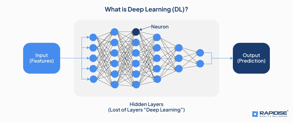 Deep Learning (DL) represents an advanced ML method which functions like the human brain through artificial neural networks (ANNs). A succession of multiple neural network layers comprises these deep artificial neural structures to extract complex data patterns through large-scale information inputs.