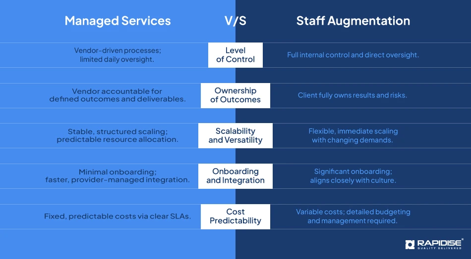 | Feature | Staff Augmentation | Managed Services |