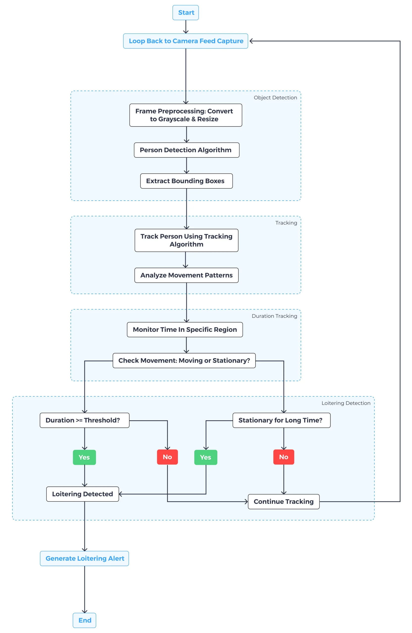 Generates real-time alerts when loitering thresholds are exceeded, enabling instant security response