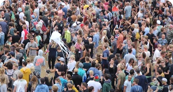 Track people in large crowds using visual features, such as a "yellow backpack."