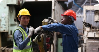 Monitor the workers or equipment (e.g., "green helmet") to ensure safety compliance.
