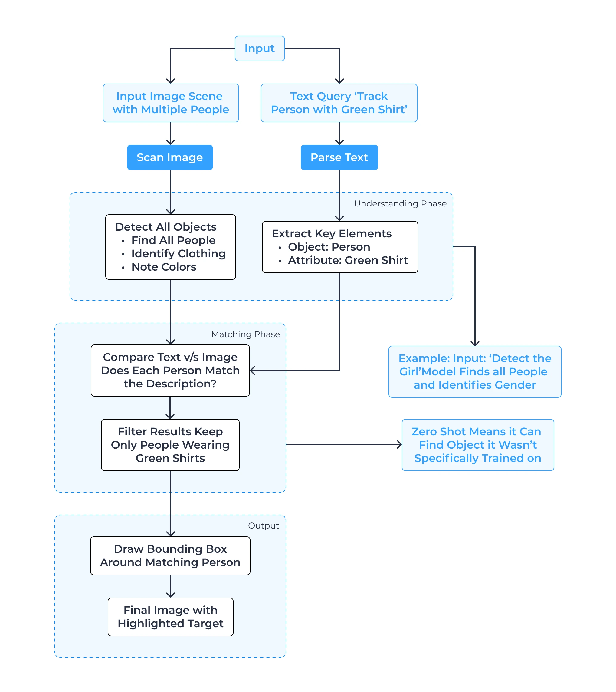 Telep’s NLP-based visual object tracking solution allows real-time surveillance by processing keyword queries, such as “track person with green shirt,” to identify and track objects in live video feeds. Leveraging advanced image recognition and zero-shot learning, the solution matches objects correctly and focuses on relevant ones for smooth, efficient monitoring. This is the latest innovative solution for improved security and operation efficiency in smooth integration with real-time accuracy.