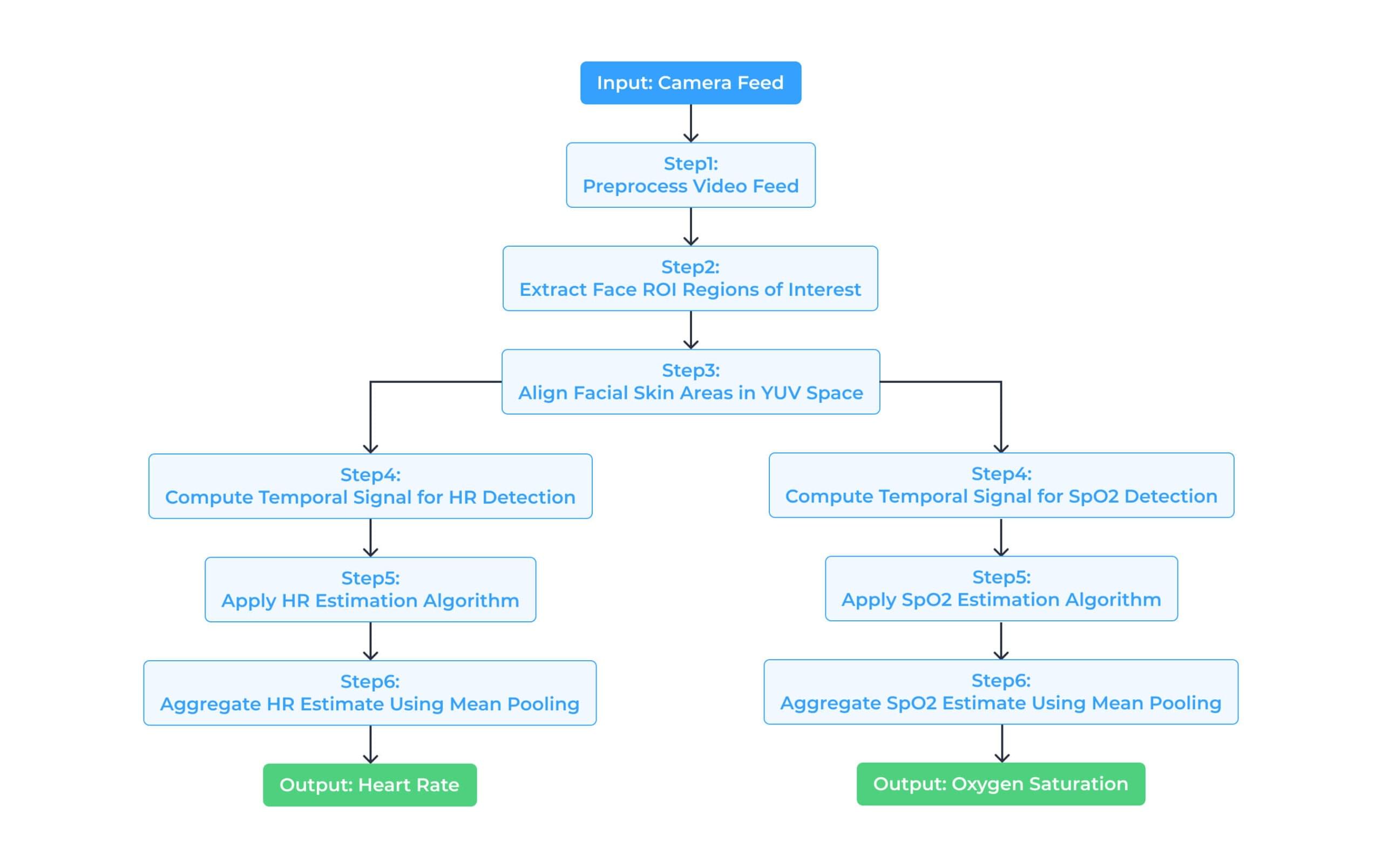 Applies specialized algorithms with mean pooling to ensure smooth, reliable HR and SpO2 measurement outputs.